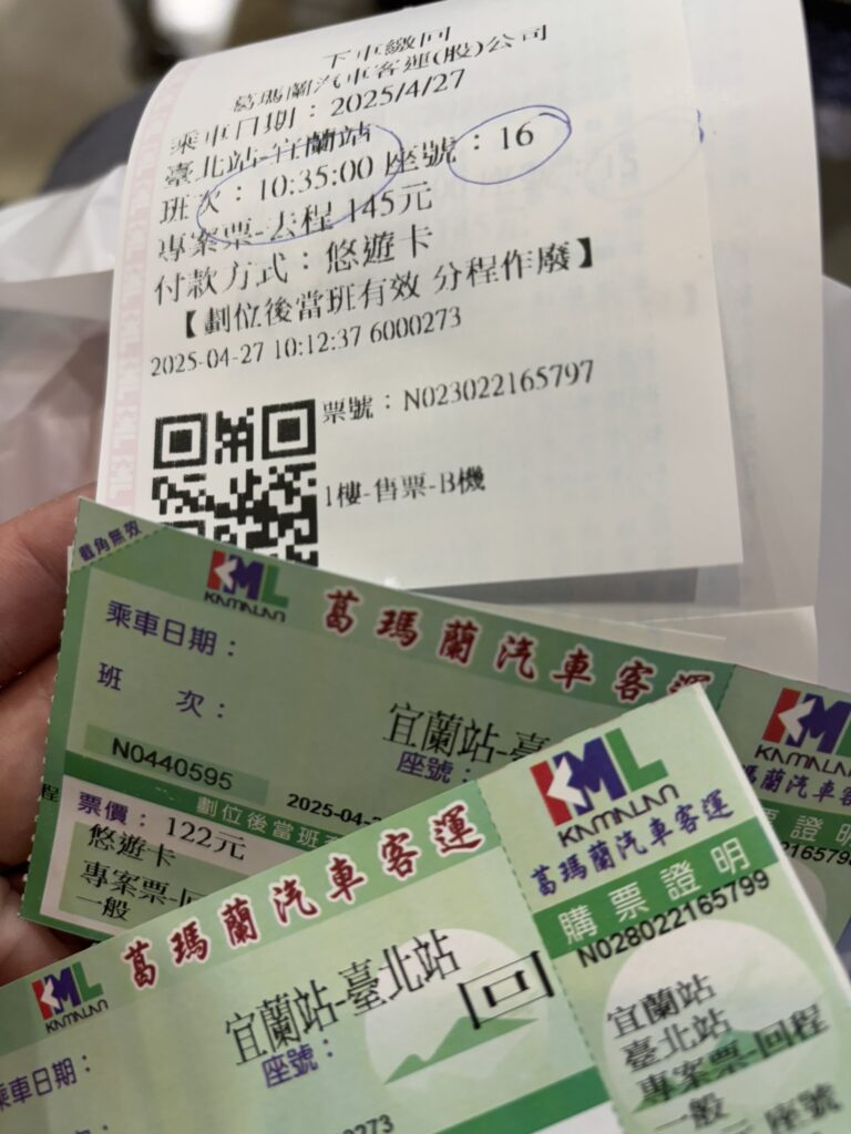 蒸留所最寄りの宜蘭駅までしかバスや電車が通ってないので一本で行くには③のタクシーしかありませんが、片道1万円位するみたいなので高価です。