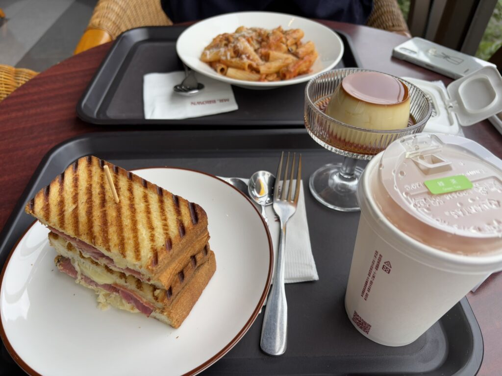 私はルーベンサンドとプリン、嫁はボロネーゼを注文しました。
